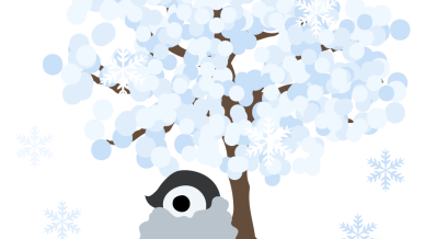 可愛い赤ちゃんペンギンのフリーイラスト素材 -冬の木-