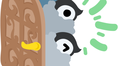 可愛い赤ちゃんペンギンのフリーイラスト素材 -ドアからこんにちは-