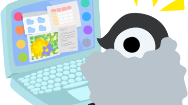可愛い赤ちゃんペンギンのフリーイラスト素材 -パソコン-