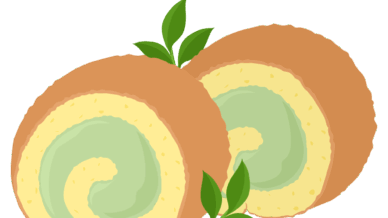 可愛い抹茶スイーツのフリーイラスト素材 -ロールケーキ-