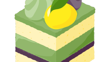 食べ物 可愛い抹茶スイーツのフリーイラスト素材 -スクエアケーキ-