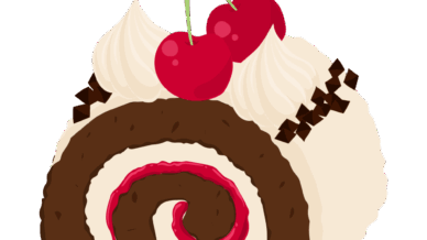 食べ物 可愛いさくらんぼスイーツのフリーイラスト素材 -ロールケーキ-