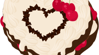 食べ物 可愛いさくらんぼスイーツのフリーイラスト素材 -ハートケーキ-