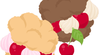 食べ物 可愛いさくらんぼスイーツのフリーイラスト素材 -シュークリーム-