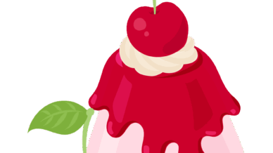 食べ物 可愛いさくらんぼスイーツのフリーイラスト素材 -プリン-