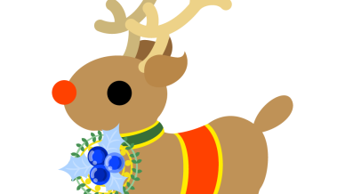 クリスマスのイラスト -ブルーのヒイラギを飾ったリボン-