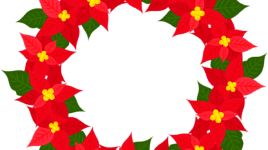 おしゃれなポインセチアのフリーイラスト素材 -クリスマスリース-