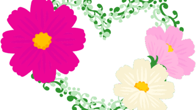 可愛いコスモスのフリーイラスト素材 -ハートのリース-