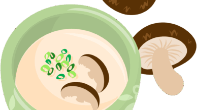 美味しそうなスープのフリーイラスト素材 -しいたけ-