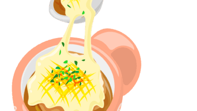 美味しそうなスープのフリーイラスト素材 -オニオングラタンスープ-