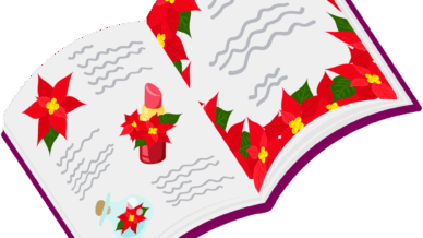 おしゃれなポインセチアのフリーイラスト素材 -本-