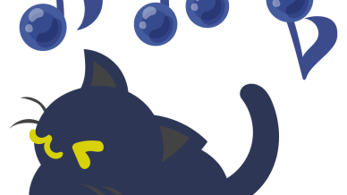 黒猫のフリーイラスト素材 -音符-