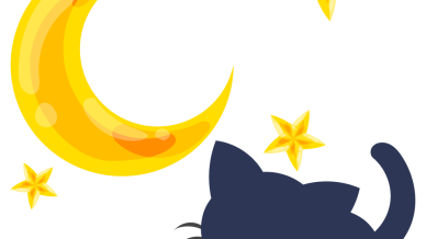 黒猫のフリーイラスト素材 -月と星-