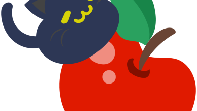 黒猫のフリーイラスト素材 -大きなリンゴ-