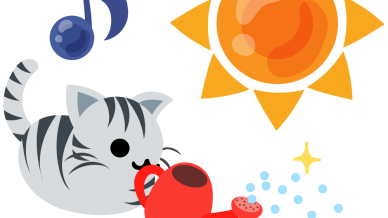 可愛いサバトラ猫のフリーイラスト素材 -太陽と芽-