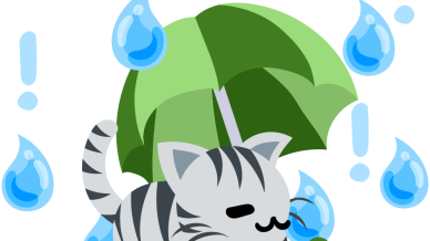 可愛いサバトラ猫のフリーイラスト素材 -雨と傘-
