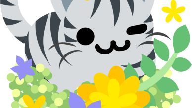 可愛いサバトラ猫のフリーイラスト素材 -花-