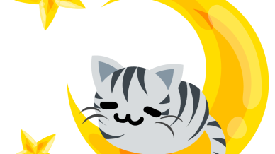 可愛いサバトラ猫のフリーイラスト素材 -月と星-