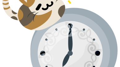 可愛い三毛猫のフリーイラスト素材 -時計-