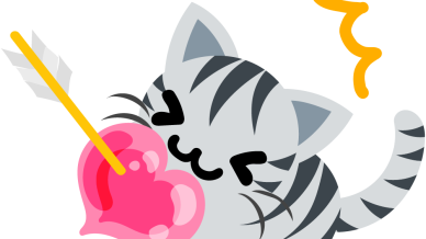 可愛いサバトラ猫のフリーイラスト素材 -ハートの弓矢-