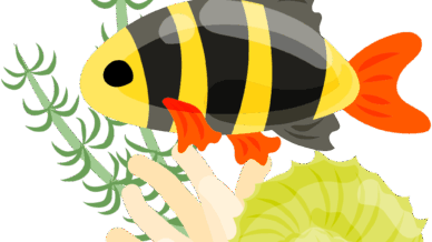 可愛い魚とイソギンチャクのフリーイラスト素材