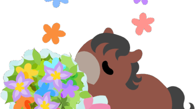 可愛い馬のフリーイラスト素材 -花束-